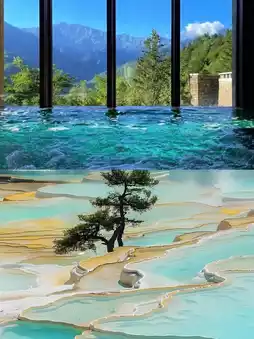 The first Ritz-Carlton Reserve hotel in China is located in the fairyland of Jiuzhaigou. The rooms have viewing balconies. The hotel's must-try experience is the outdoor heated swimming pool with viewing windows on both sides, where you can watch the snow-capped mountains while swimming.