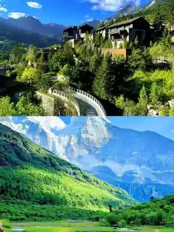 Located at the foot of Four Girls Mountain in Changping Valley Scenic Area, each room has its own unique view. In the early morning, there is the magnificent sunrise over the snow-capped mountains; at night, the starry sky over the snow-capped mountains is even more gorgeous.