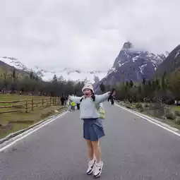 🏔️ Four Girls, Shuangqiaogou Trail on a Cloudy Day ☁️