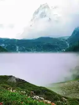 The morning light on the plateau⛰️ pierces through the clouds, draping Mount Siguniang in golden veils. In June, Changping Valley stages a ♐️romantic symphony of snow-capped peaks and floral meadows. 🧑🏼🦯This trek route makes souls tremble, ❤️with every step treading upon nature's poetry.