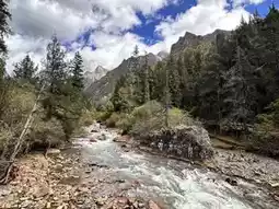 📍 Kushuitan: The highlight hiking section of Changping Valley, dead trees fallen in clear streams with majestic snow mountains behind, like stepping into a fairy tale.