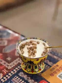 🍲 In addition to being a place to stay, it is also a restaurant and cafe. You have to make a reservation for the restaurant because there are a lot of people coming to eat in the evening. The famous menu is Yak Meat Hot Pot (Fujinshi Milk Meat Soup Pot) and Wild Mushroom Chicken Hot Pot (Kobe Mushroom Chicken Hot Pot). We ordered a small set of Wild Mushroom Chicken Hot Pot (小锅) for about 188 yuan, which can be eaten by 2-3 people. Inside the hot pot, there are chicken, wild mushrooms, vegetables, and dipping sauce. This place is famous for its Yak Meat Hot Pot. For those who love meat, you must try it. For dessert, order the yak milk yogurt (青稞牦牛酸奶), a unique sour taste, for about 28 yuan. In addition, the shop also has many drinks and coffee to choose from.
