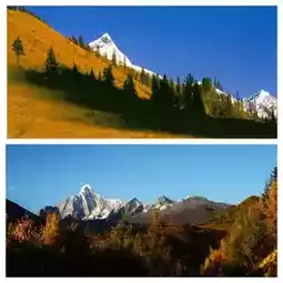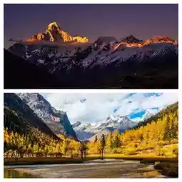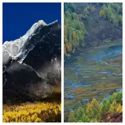Waking up in the guest room at dawn, the first sight is the snow-capped peak of Yaomei Peak. Mist flows down the dark green firs, the maples are ignited by the autumn wind in fiery red, and the golden birch trees spread across the valley, just like the Zangla Valley guarded by the four sisters, blooming in its most splendid autumn colors.