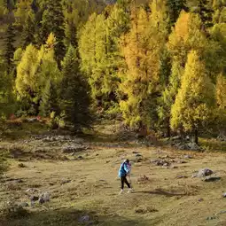 The autumn in Tianse is as vibrant as if a divine hand had accidentally spilled a palette of colors. Snow-capped mountains stand majestically, their icy peaks glistening under the sunlight. Clear lakes reflect the colorful forests and shifting clouds like a painting. When a gentle breeze brushes by, the surface of the water scatters the beautiful hues of late autumn.