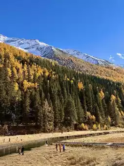 The autumn in Lixiaolu is truly stunning! 🍁 This hidden gem in Aba Prefecture features golden trees against snowy mountains and blue skies, making every snapshot wallpaper-worthy. Especially on clear days after snowfall, it’s like a fairyland on earth!