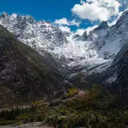 · Majestic Snowy Mountains: Peaks crowned with pristine white snow