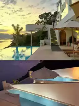 🌈The sea view is amazing, open the curtains and you can see the beautiful sea🌊, the room is decorated in a Greek style, full of Instagram style, the interior is very clean and tidy, and the design is full of style, especially the chandelier🔮 and spiral staircase in the lobby, which are stunning when lit up at night, and there is a huge swimming pool🏊🏻 next to it, which is very photogenic📸!