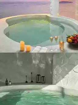 It has a Santorini vacation vibe! A relaxing and comfortable feeling, very beautiful and photogenic!