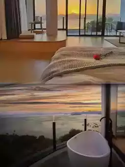 Soaking in the open-air bathtub 🛁 while stargazing ⭐ is truly romantic ✨. The solid wood furniture, hammock 🛏️, and breathtaking sea views 🌅 make it impossible to stop taking photos. You can even see the beach from the rooftop, perfect for quietly savoring the moment.