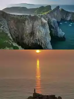 · Features: 90-degree vertical cliffs, crescent-shaped island, lush green lawns