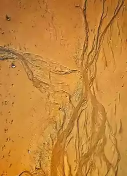 As the tide slowly recedes, winding patterns are left on the tidal flats, like mysterious palm lines carved by time on the earth, hiding countless stories.