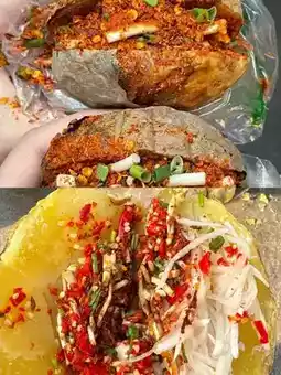 ▫️Liangshan burgers are actually grilled potatoes from roadside stalls. Ask the aunt to add more Houttuynia cordata and homemade chili sauce. The pushcart stall you meet at the entrance of Moon Valley Winery is the most delicious. The potatoes are grilled until the skin is wrinkled and especially flavorful.