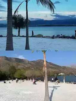 ▫️It is recommended to go to Xingyue Lake on a cloudy day. The gray sky makes the palm trees look more cinematic. Remember to wear bright clothes. My last time's daffodil yellow shirt stood out especially well in the photos.
