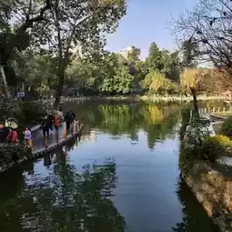 This trip, there was very little time. We landed at 5 pm and arrived at the accommodation at almost 7 pm. Then we went to take pictures at the IFS building next to the hotel, went out to find something to eat, and came back to rest because in the morning we booked a tour to Xiling Mountain. We had to leave the accommodation at 6:30 am. The car left at 7:20 am. It took about 2 hours to reach Xiling. Then we walked to the cable car to go up the mountain. We stayed at Xiling until 4:20 pm. We took the car back to the city at almost 7 pm and then went out to visit SKP. We rode a bicycle in the city for a bit before returning to the accommodation. In the morning, we went to the park and the wide and narrow alleys. In the afternoon, we took the train to Chongqing.