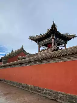 The layout of Beizi Temple is unique. It consists of seven temples enclosed by red walls, arranged side by side. The orientation of these temples is also distinctive, facing southeast and sitting northwest. This breaks with the traditional Chinese architectural practice of aligning with the north-south meridian, instead following the orientation of the doors of Mongolian yurts. This architectural orientation reflects Mongolian customs, as it helps to block the cold northwest wind in winter and allows for the entry of cool southeast air in summer.