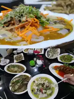 Whole fish feast: Made from fresh freshwater fish from Duolun Lake, prepared in various ways such as roasting, grilling, cooking, boiling, frying, and stewing, offering rich flavors. Also try Inner Mongolia morning tea, hand-held meat, and whole roasted lamb.