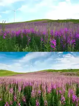 🌻In the heart of the Huitengxile Grassland in Xilinhot, there is a place called Liulangou. From June to August, Lulan flowers bloom, creating beautiful flower fields. The purple flowers are mysterious and dreamy, contrasting beautifully with the green grassland.