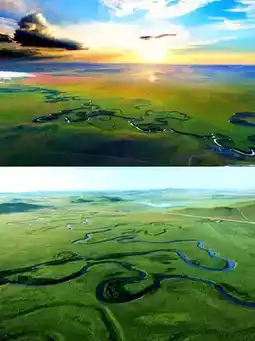 🌊Winding rivers add endless poetry to the vast green fields. On both banks, green grass stretches, cattle and sheep roam freely, birds fly, creating healing scenery and poetic landscapes everywhere!