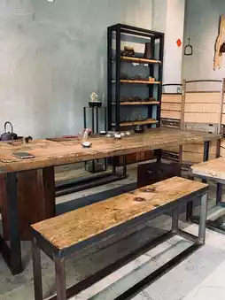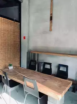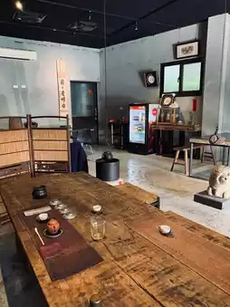 The indoor dining environment is tranquil and comfortable, yet the menu offers traditional snacks.