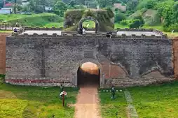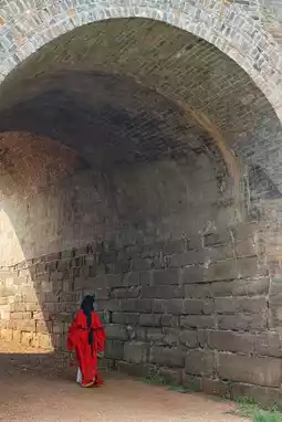 The pass building site is the main building of Han Hangu Pass, which was rebuilt in 1923. The pass building is divided into three levels: upper, middle, and lower. The middle level is a cross-symmetrical cave with four sides connected, four doors open, a cross seam on the top, and four rooms connected, each with two "wordless steles" embedded. The floor is paved with gray pottery square bricks, and there is a platform outside the room, with couplets on all four doors.