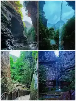 1️⃣ Wulongtan Waterfall (📍Starting point): The first stop is shocking! The five waterfalls are like a white dragon entering a pool. It is recommended to take panoramic photos from the viewing platform on the left. Rainbows appear frequently when the sun shines obliquely at 10 o'clock.
