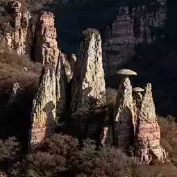 - Flying Divine Stone: A 20-meter-high solitary rock stands on the cliff edge, seemingly about to fall but has stood firm for millennia. Legend says it is a piece of stone left by Nüwa when mending the sky. Using a telephoto lens highlights its danger and uniqueness.