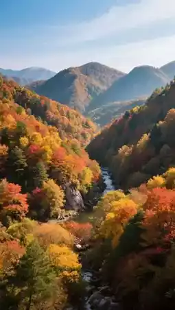 - Autumn exclusive: mountains covered with red and yellow leaves interwoven, reflected in clear streams, like a fairyland