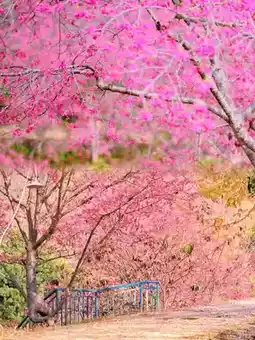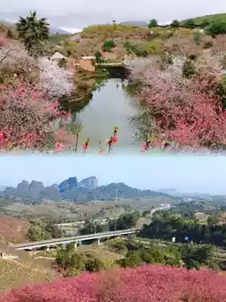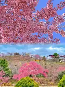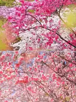 🌸 The largest cherry blossom viewing area in Guangdong! Shaoguan Cherry Valley is the largest cherry blossom viewing area in Guangdong Province, with a total area of over 800 mu (53 hectares). The park has more than 20 varieties of cherry blossoms.