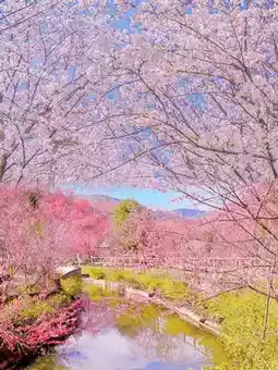 🎊 The park covers an area of over 800 mu (53 hectares) and has more than 20 varieties of cherry blossoms, mainly Prunus campanulata and Prunus serrulata.