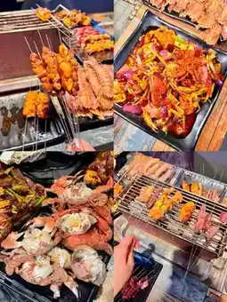 🦐Must-try seafood feast: Barbecue Bijia Mountain Crab, Garlic Scallops, and Salted Mantis Shrimp. We recommend going to Yumin Xincun food stalls.