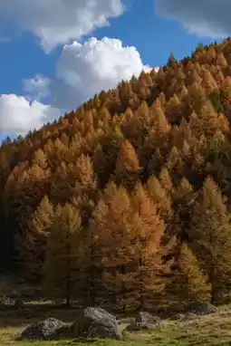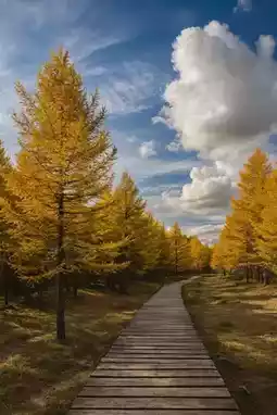 The whole mountain is draped in golden yellow, with layers of pine and birch forests. When the wind blows, leaves fall gently, as if stepping into a moving oil painting 🎨.