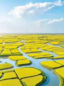 Unlike other places where rapeseed flowers grow wantonly in flat fields, Xinghua rapeseed flowers are spring elves growing on stacked fields. The fields, as the unique agricultural landscape of the Rixiahe area, are like works of art carefully carved by nature. Surrounded by water, they stand alone and beautifully above the water, resembling small islands. From a high altitude, the whole field area is like an endless maze, with every meandering waterway a clue to a puzzle; and like a golden puzzle floating on the water, each piece is filled with spring life. Every April, when 4,600 acres of rapeseed flowers bloom in full bloom, the fields are instantly transformed into a sea of brilliant gold. The breeze blows gently, the waves of flowers are rolling, and the sweet floral fragrance can't wait to spread, lingering on the tip of the nose and in the heart🌸
