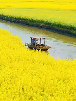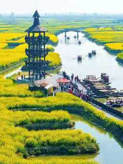 Sit on a black-sailed boat and travel through the golden ocean, and enjoy the shock of thousands of acres of rapeseed flowers on the water. It is really a must-see.