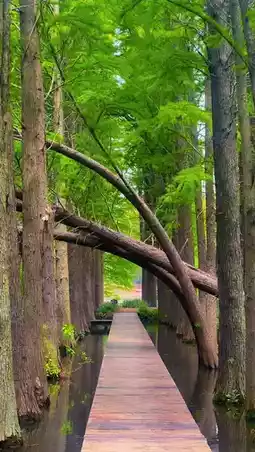 Stroll along the wooden boardwalk, observe the roots of the water cypresses up close, and feel the tranquility and vitality of the forest.