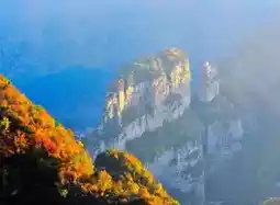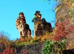 Don’t forget to look back while climbing! Two stone peaks shaped like ancient figures “welcome guests” amidst the brilliant autumn leaves, super picturesque, remember to take a photo!