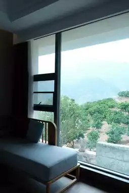 Houshan Countryside Hotel, nestled halfway up the mountain with a direct view of Guzhao Highway.