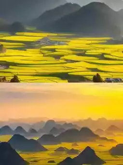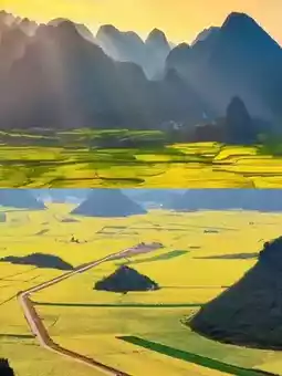 Morning: The first stop has to be Wanfenglin Forest🌄, one of the five most beautiful peak forests in China. From March onwards, the mountains and fields are covered with blooming rapeseed flowers, creating a sea of gold. Stepping into Wanfenglin Forest, the rolling peaks resemble a freehand ink painting by nature. The "Fu" character field and the "Bagua" field are even more unique, nestled within the sea of flowers. You can stroll along the paths between the fields, taking in the fragrance of the soil and the sweet scent of rapeseed flowers. It's a fantastic spot for taking photos📸.