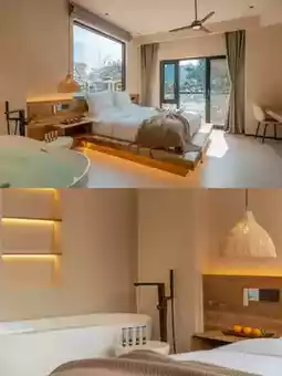 The resort's architectural design is ingenious, preserving natural rustic charm while incorporating modern minimalist style. The exterior uses natural stone and wood materials that harmonize with the surrounding forest landscape, while the interior creates a warm, comfortable, and stylish atmosphere with soft lighting, finely textured furniture, and artistic decorations. Each guest room is a carefully crafted work of art featuring large floor-to-ceiling windows or scenic balconies that bring the mountain views indoors without reservation. In the morning, wake up with the first ray of sunlight, open your window to embrace the fresh mountain air and listen to the melodious birdsong; at night, fall asleep peacefully under a star-filled sky, accompanied by the sounds of insects and mountain breezes, allowing your body and mind to completely relax in nature's embrace.