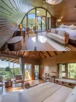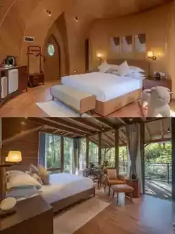 The hotel is nestled in the Yuntun National Forest Health and Wellness Base, with guest rooms scattered like stars among the forest and lawns. When you stay here, you'll wake up to greenery and breathe in the freshness of the plants and trees. Whether it's a romantic tent room or a fun-filled tree house, each room has a huge terrace and floor-to-ceiling windows with views of the forest, and you can almost touch the clouds ☁