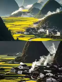Wanfenglin is beautiful year-round, each season offering its own charm. In spring (March-May), rapeseed flowers transform the fields into golden oceans, with peaks floating like islands. Summer (June-August) brings emerald-green rice paddies, where peaks play hide-and-seek in the mist. During autumn harvest (September-October), golden rice waves create stunning contrasts with the gray-white peaks. Winter (November-February) drapes the landscape in morning fog, resembling an ink-wash scroll. Don't miss the Buyei ethnic "Flower Dancing Festival" on the 2nd day of the 2nd lunar month for unique cultural experiences.
