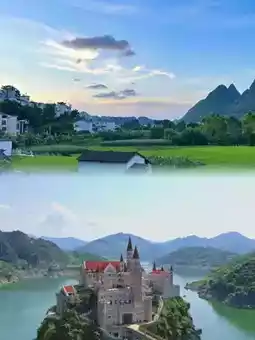 ✅ Wanfeng Lake + Jilong Fort free admission! Navigate to "Hongchun Village" to shoot the lake heart castle 🏰 → Boat ¥60 to see peak forest reflections, fisherman's sour soup fish ¥50/person fresh to tears for free