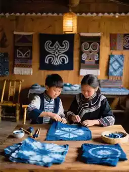 Under the guidance of a Buyi intangible cultural heritage inheritor, kids design their own indigo-dyed handkerchiefs, participating fully from fabric folding to dye soaking. They can wear their self-made indigo headscarves for photos, looking super stylish! They can also take their creations home as travel souvenirs.