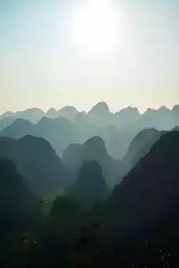 The sightseeing bus slowly drove along the mountain road at the mid-slope. Each viewing platform offered a different scene, especially the "Bagua Field" viewing platform, where the sight was breathtaking: thousands of conical peaks arranged like an army stretching to the horizon, at the foot of the mountains were Buyi ethnic villages and neatly arranged rice fields, and the winding Nahui River flowed like a silver ribbon. When morning mist lingered, it looked like a huge ink painting, stunningly beautiful and breathtaking.