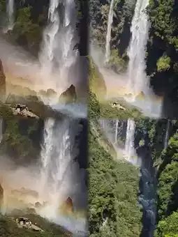 Besides Wanfenglin, the Maling River Canyon, known as "the most beautiful scar on Earth," is also worth visiting. Upon entering the canyon, I was immediately overwhelmed by its grandeur: towering cliffs on both sides, countless waterfalls plunging from cliffs hundreds of meters high, the roar of water, and mist everywhere. Walking along the plank road, we passed many waterfalls one after another. The Huanglong Waterfall struck our sight like a water curtain cave; the Pearl Waterfall splashed water droplets like billions of pearls sparkling under the sunlight. Finally, we reached the Wanma Benteng viewing platform, arguably the most spectacular spot in the canyon. Standing on the platform, dozens of waterfalls fell side by side, roaring like thunder with majestic momentum. Even more fortunate, sunlight passing through the mist formed rainbows, dreamy and magical.