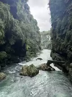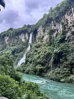 🌄 Among the karst wonders, hundreds of waterfalls cascade down like silver ribbons, with the thunderous roar of rushing water echoing through the valley, and rainbows spanning across the mist! 🌊 Traverse the fissure plank road, touch the billion-year-old calcite wall hangings, and experience the cool secret realm like the Water Curtain Cave. Rafting through rapids and strolling on suspension bridges, every step is a double shock of visual and adventure.