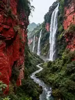Core Highlights: "The most beautiful scar on Earth," with clusters of waterfalls inside the gorge, including the "Galloping Horses Waterfall" and "Pearl Waterfall" cascading down. The plank road is built along the cliff, thrilling and scenic at every step. Seniors can take the elevator down the gorge (less stairs), children can see rainbows hanging between waterfalls, and in summer enjoy rafting (198 RMB/person, for those over 1.2 meters).