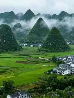 Core Highlights: One of "China’s Five Most Beautiful Peak Forests," with over 3,000 strange peaks rising like bamboo shoots after rain. Buyi villages are nestled among the fields, and the curves of the "Bagua Fields" are fascinating. Seniors can take the sightseeing bus for panoramic views, children can chase butterflies in the fields, see rapeseed flowers in spring, golden rice in autumn, beautiful in all seasons.