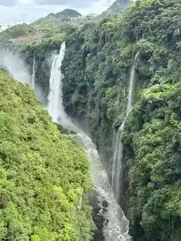 - Wanma Benteng Waterfall Group: The soul of the canyon, with over 60 waterfalls distributed along the 1.7 km canyon banks. During the high water season, the scene is magnificent, like a stampede of thousands of horses. You can take panoramic photos from the bridge or capture the silky water flow from the water curtain cave behind the "Pearl Waterfall."