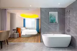 The hotel lobby is designed with a minimalist yet cozy style, with warm yellow lighting that instantly puts you at ease. The front desk staff are incredibly friendly, with sweet smiles, and they process check-ins quickly while thoughtfully recommending nearby late-night snack spots. The rooms are clean and spacious, with large windows offering street views in some rooms. The beds are soft and comfortable, with just the right amount of firmness in the mattresses, ensuring a restful sleep after a long day. The en-suite bathrooms feature separate wet and dry areas, with hot water available quickly. The toiletries have a light, pleasant fragrance, adding to the comfort of your stay.