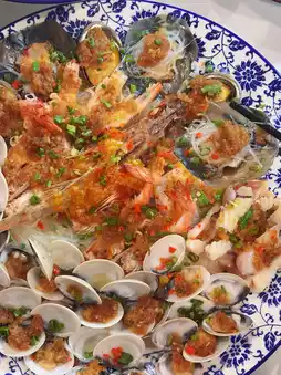 Strong garlic aroma featuring clams, butterflied prawns 🦐, squid 🐙, abalone 🐟, scallops, etc. ✅ Enjoy the natural taste of fresh seafood!